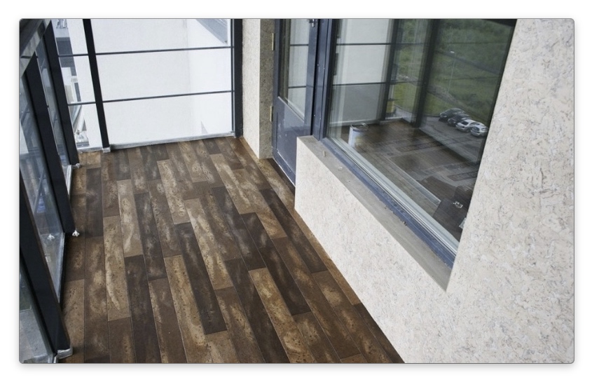 Рекомендация: выполняя облицовку пола, принимайте во внимание особенности конструкции балкона, а также нагрузку, создаваемую покрытием на опоры каркасного основания. Этот вариант в большей степени подходит для утепленных балконных пространств