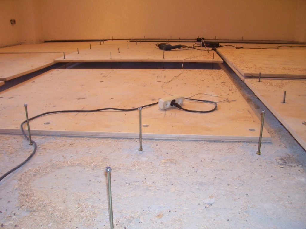 Недавно европейские предприятия разработали уникальную технологию монтажа деревянного пола поверх листов из фанеры, которые, в свою очередь, укладываются на пластиковые фиксаторы с резьбовыми пластинами. Таким образом, обеспечивается регулировка уровня поверхности путём вращения пластины и её перемещения вверх или вниз.