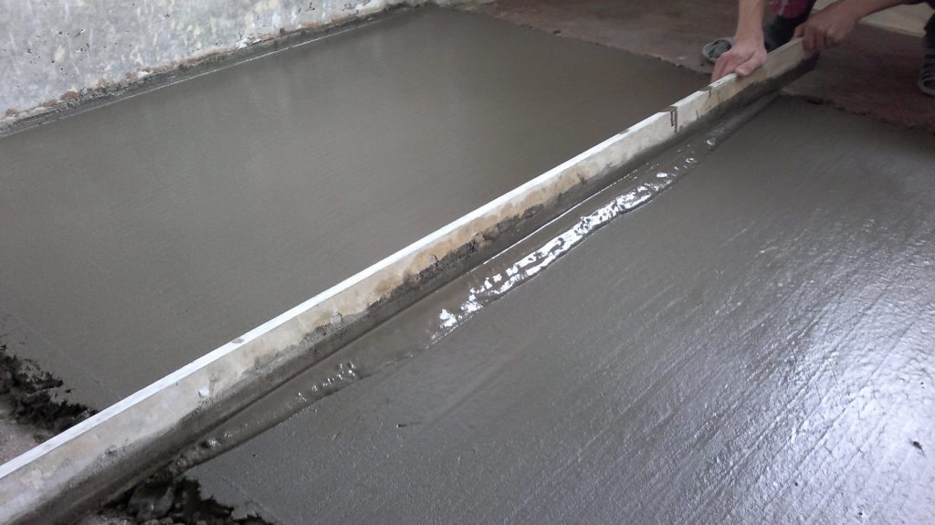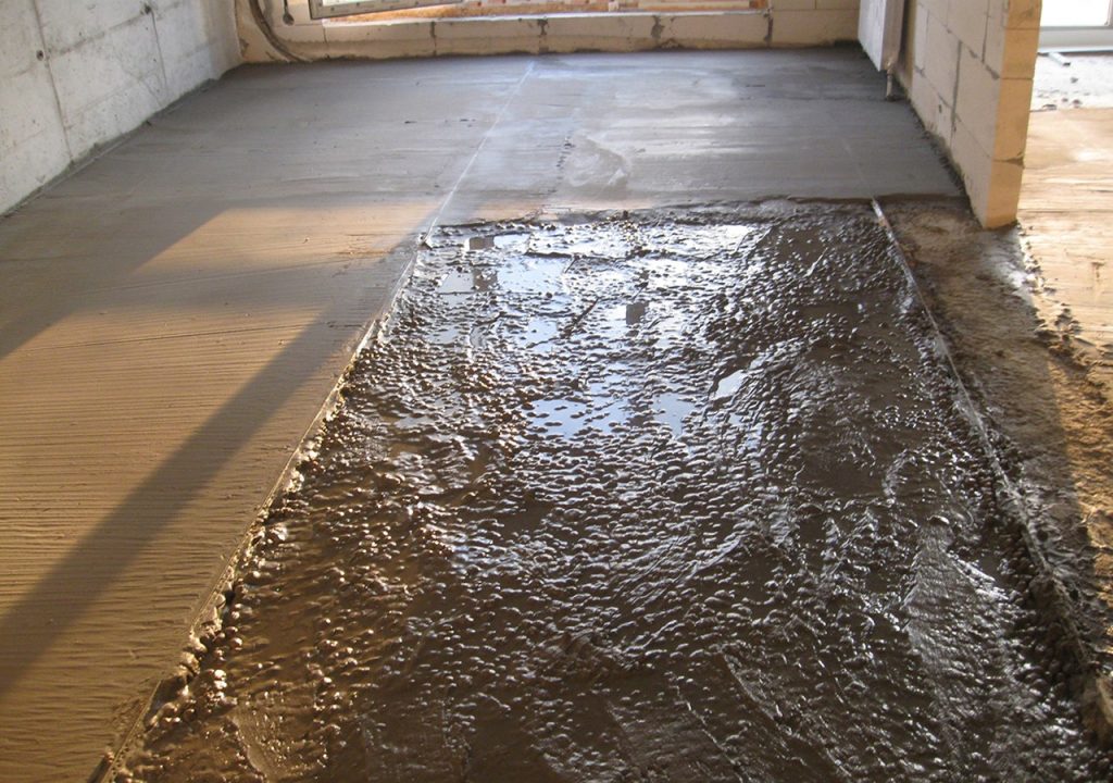 Одним из самых популярных видов основания является черновое покрытие в виде мокрой стяжки. Устраивается путём заливки цементно-песчаного раствора по маякам до достижения необходимой толщины. При достижении правильной консистенции покрытия, стяжка автоматически растекается по всей площади, сглаживая все дефекты плиты перекрытия.