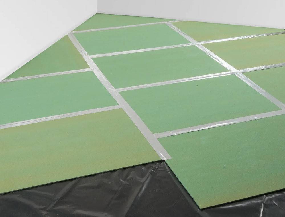 - Фиксация швов скотчем или малярной лентой (нужно отступить по 20 см от верхнего либо торцевого края мата).