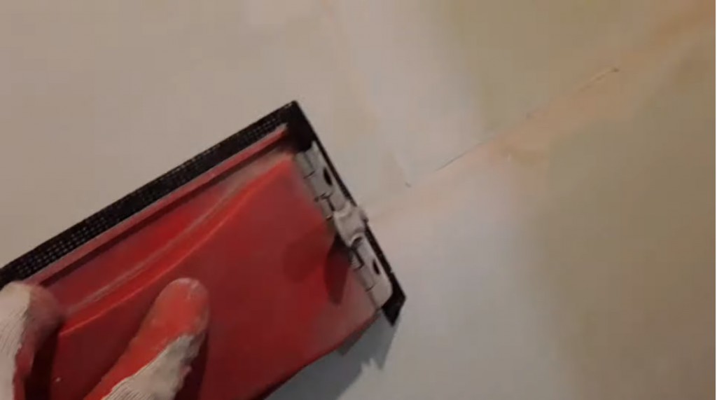 Выравнивается основание. Для этой цели стена оштукатуривается, а затем обрабатывается с шкуркой подходящей зернистости;