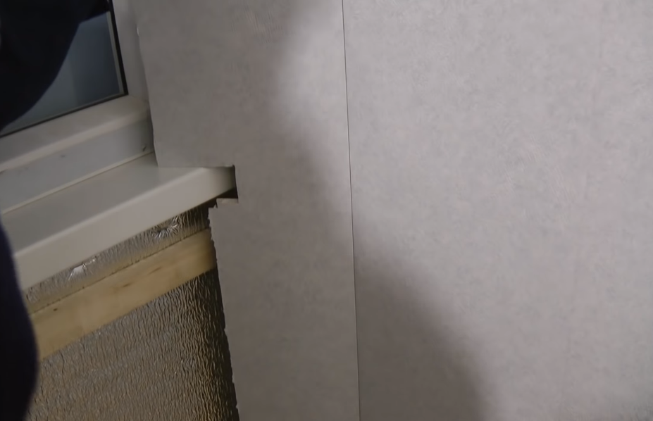 Последнюю панель отрезаем в размер. Тщательно выверяем геометрию элемента в вертикальной и горизонтальной плоскости.