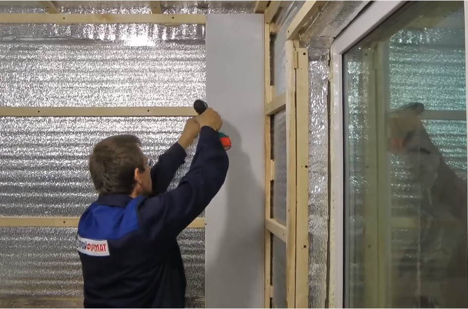 - На обрешетку, позволяющую заполнить пространство между стеной и панелью теплоизоляционным материалом либо проложить коммуникации;