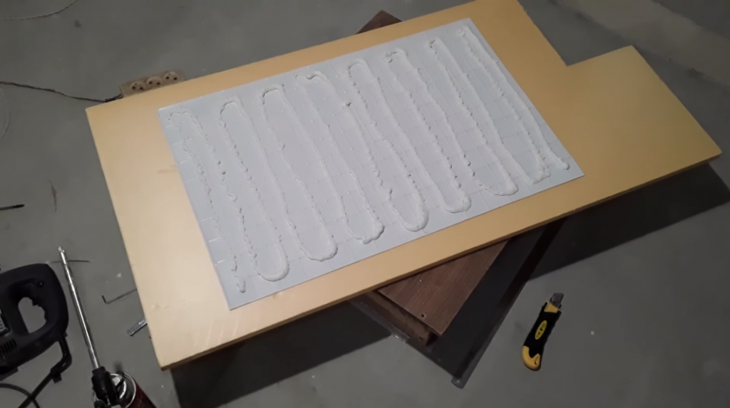 Выполняется разметка основания. Клеевой состав наносится на всю поверхность панели;