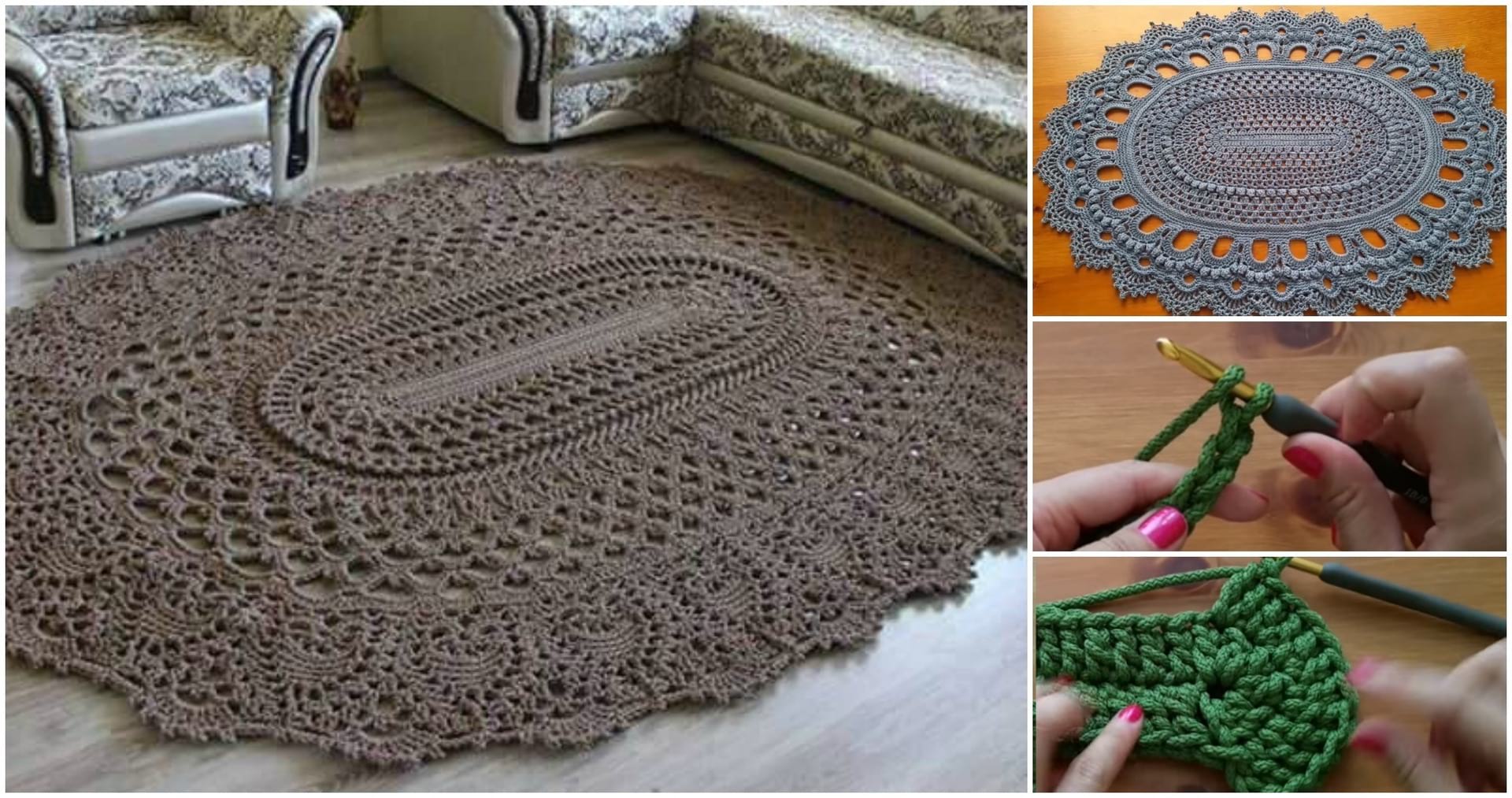 Обычно используются два вида петель: воздушные петли, столбики с 1 накидом. Эта модель коврика овальной формы.