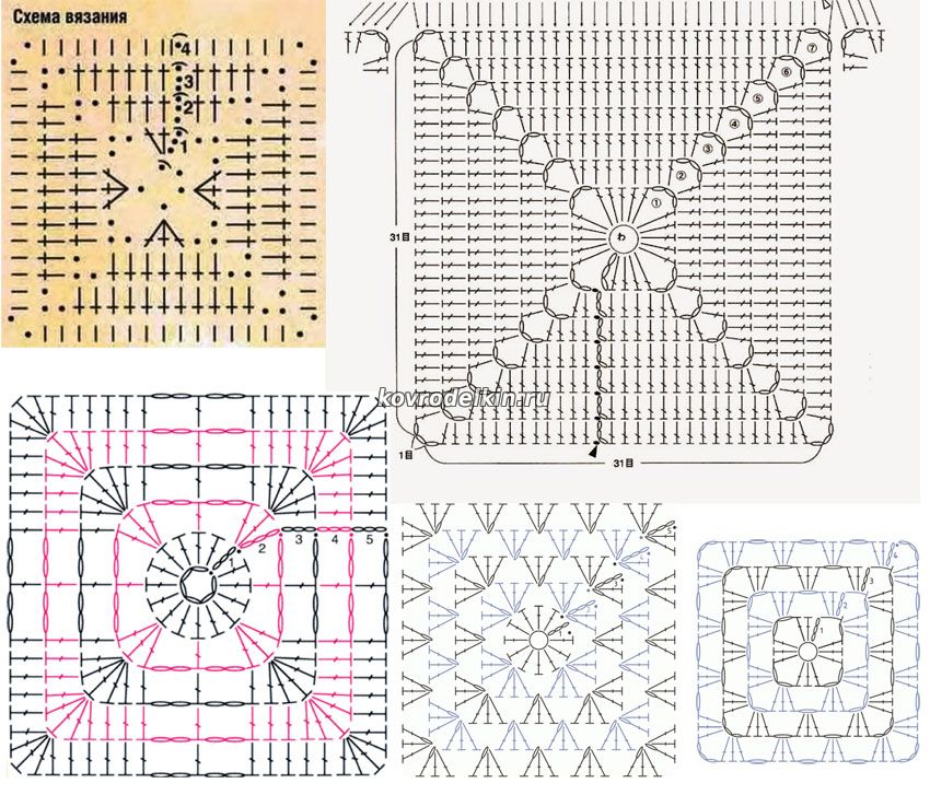 В интернет мы нашли очень много простых и сложных схем вязания ковров крючком.