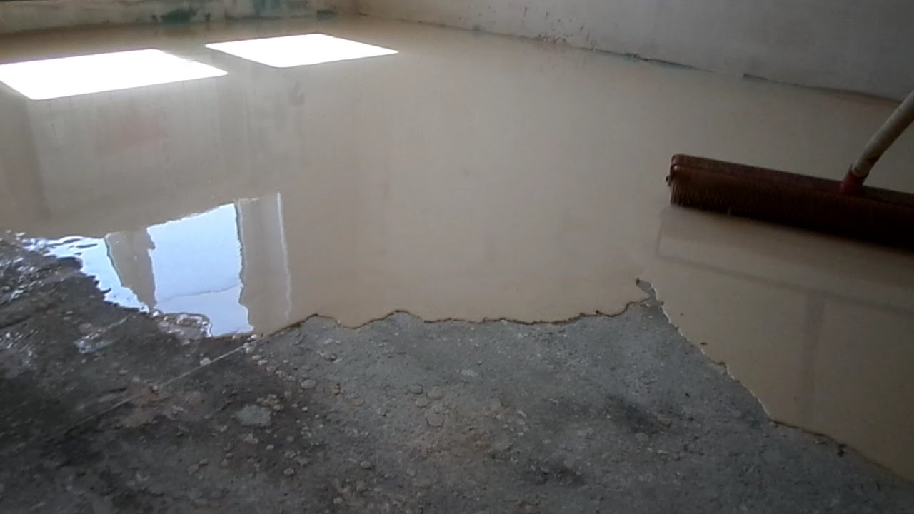- После того, как черновой пол наберет прочность на него расстилают слой гидроизоляции, который также как и при монтаже подложки под ламинат продается в рулонах и укладывается с применением строительного скотча.