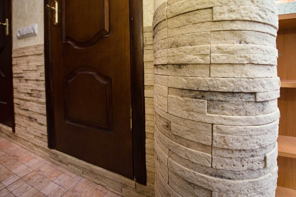 Одним из основных преимуществ плитки является небольшая толщина и минимальный вес материала. Квадратный метр отделки вместе с клеем, весит не более 5 кг, что отлично подходит для случаев, когда нужно снизить вес отделки.