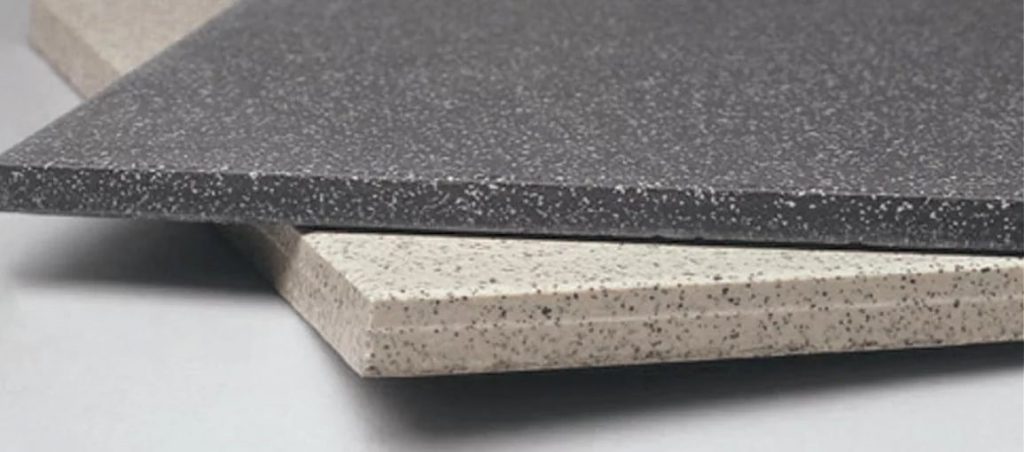 Плитка композитного типа на ПВХ основе имеет толщину от 1,5 до 3,5 мм и по уровню износостойкости приближается к натуральному камню. Отличается многослойной структурой, при которой каждый слой имеет свои эксплуатационные свойства: