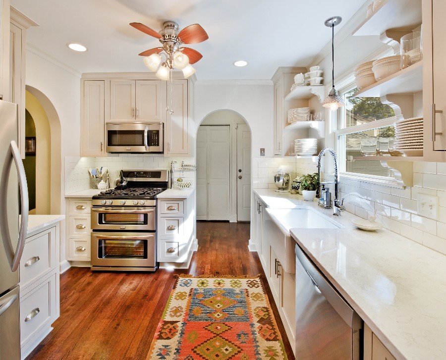 Для кухни стоит выбирать ковровые покрытия с коротким ворсом (до 7 мм) или вообще без ворса (циновки). Они легко поддаются чистке и мытью, а также в них не будут накапливаться пыль и крошки.