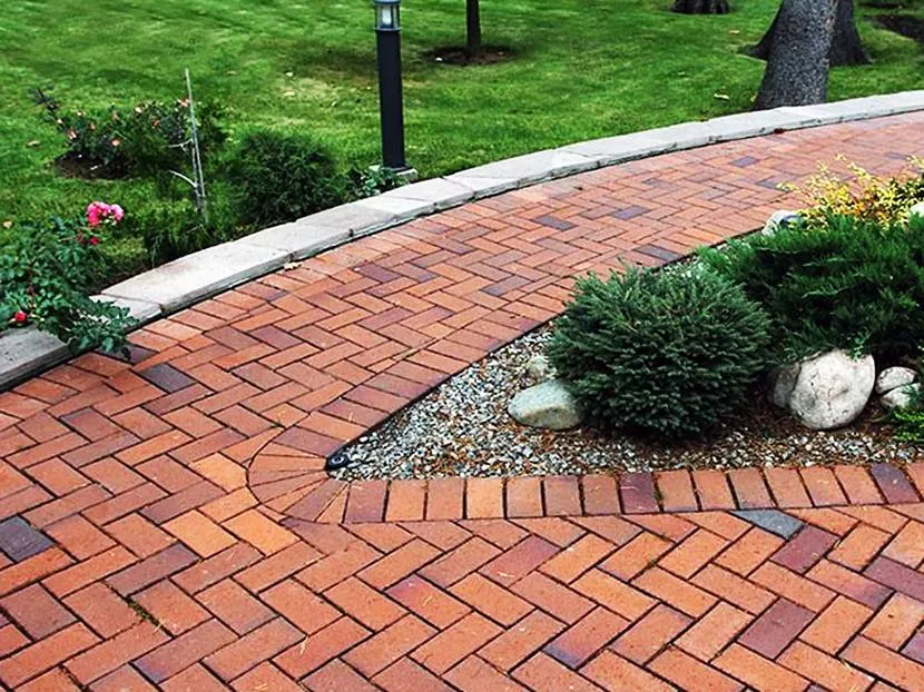 - Для создания перспективы используют ряды кирпичей, поставленных на торец. Он может сгибаться в окружность и часто используется как окантовка дорожек.