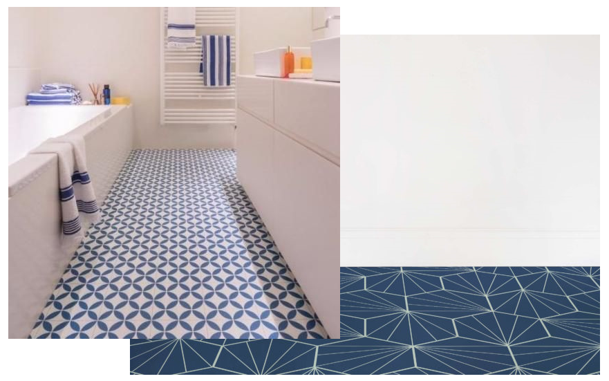 Кварцвинил – это идеальное покрытие для санузла. Изделия обладают влагоотталкивающими свойствами и устойчивы к микроорганизмам. Они убедительно имитируют кафель, но в отличие от ледяной поверхности керамики, кварцвинил гораздо приятней по тактильным ощущениям.