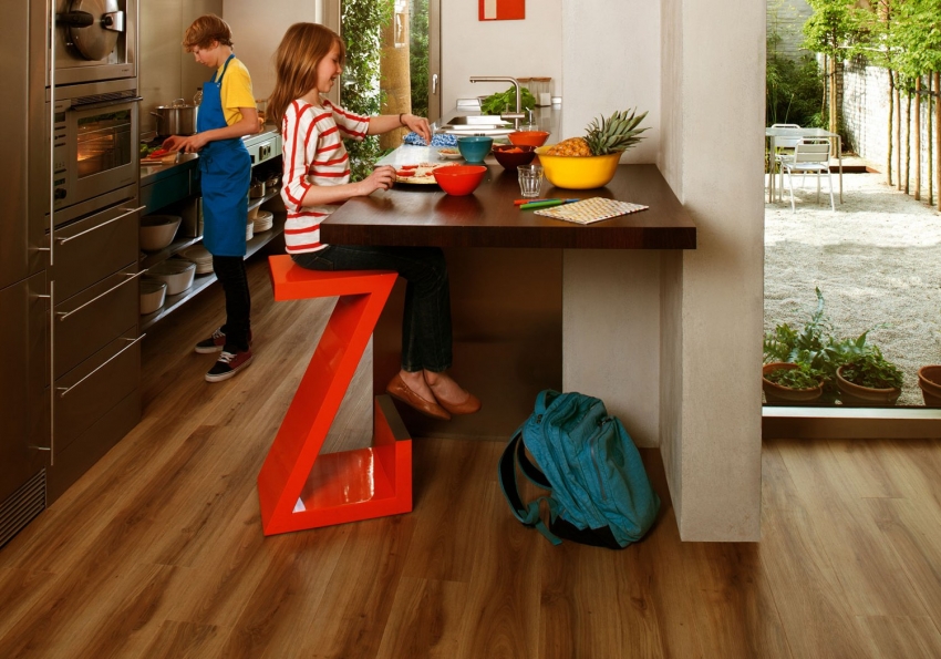 В помещении, где постоянно готовят, часто страдает пол, но кварцвинил выдержит любые испытания: падение посуды, пролитую воду и всевозможные загрязнения.