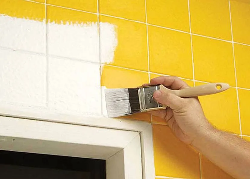 Желтая плитка и белая краска Источник gidpokraske.ru