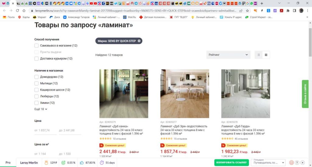 Итог: Ламинат Quick Step, Sens, Clic&Go к покупке рекомендую. Отличающая особенность этого бренда — возможность качественного монтажа при наличии дверей. Что ставит Квик Степ в ряд лучших производителей ламината.
