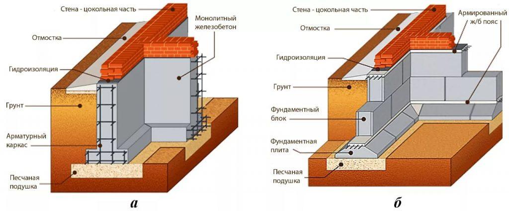 Если сравнивать ленточный монолитный и блочный фундамент, то вырисовывается такая картина: