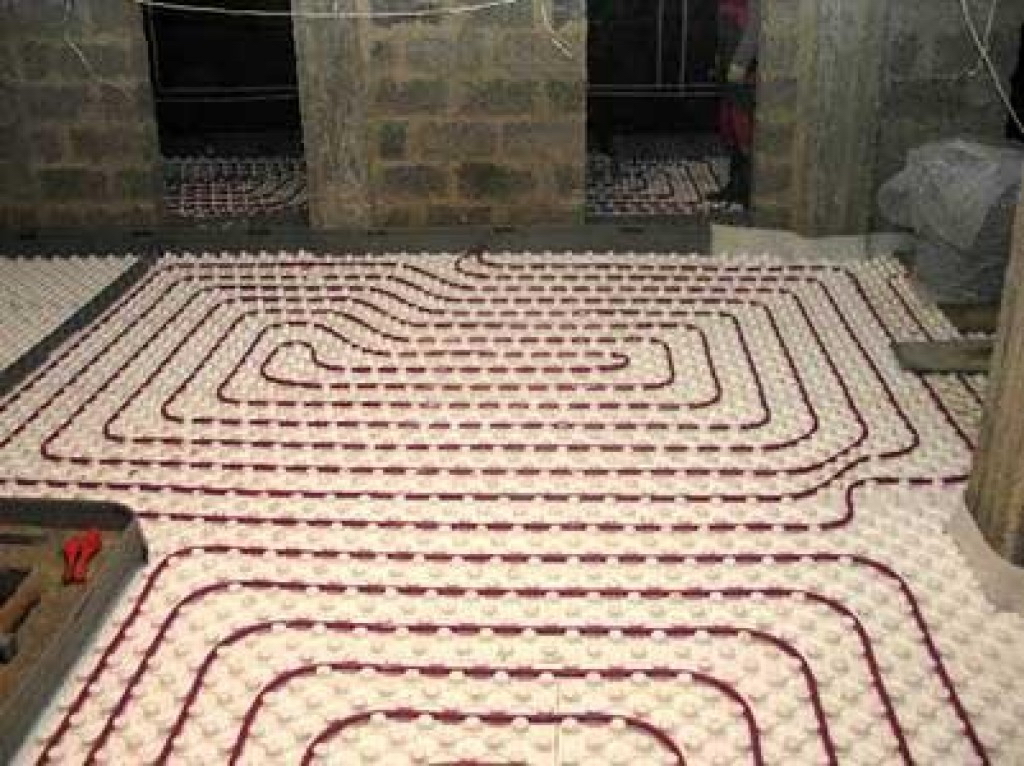 Чтобы утепленные пенопластом полы по грунту были еще теплее, можно проложить под стяжкой кабель теплого пола.