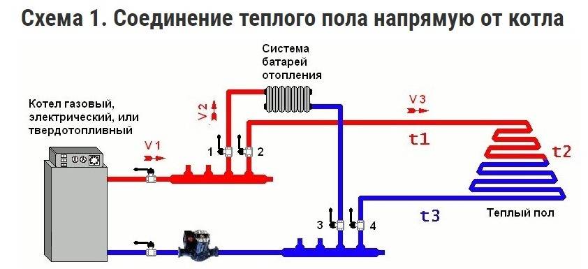 Схема системы теплого пола, работающей от котла