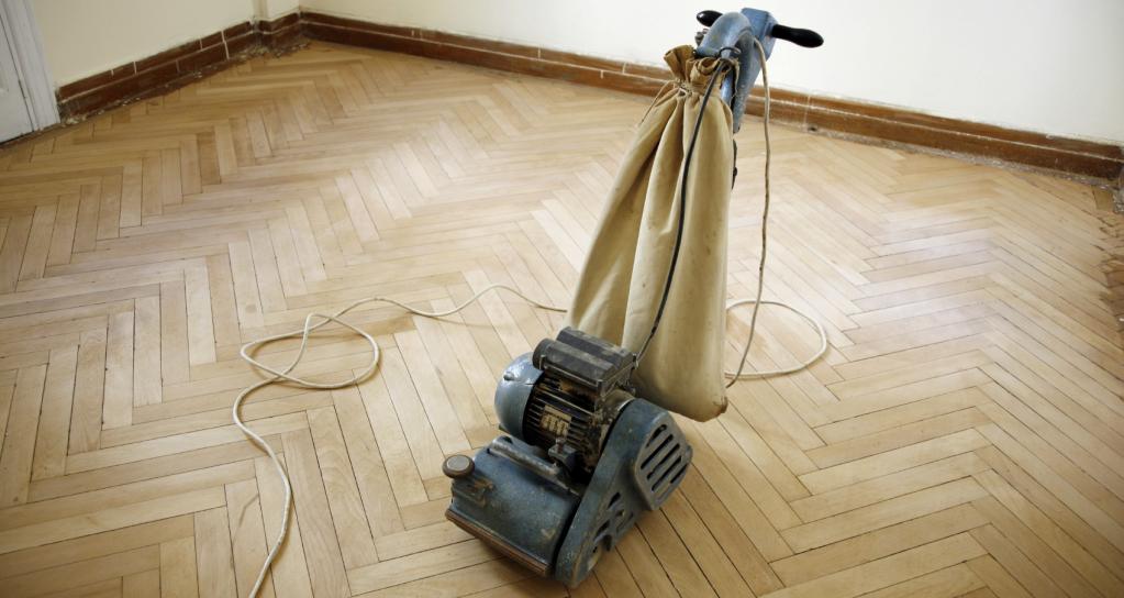 Удаление старого лакового покрытия производится при помощи циклевочной машинки