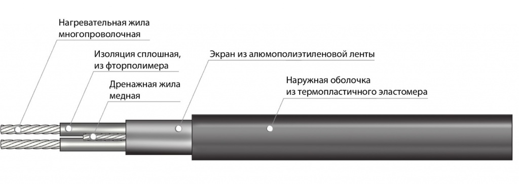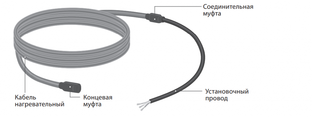 Поскольку двухжильный кабель запитывается только с одной стороны, это облегчает процесс монтажа системы обогрева полов в холодильной камере. Электропитание подается с одного конца, поэтому упрощается расположение и подключение конструкции к терморегулятору. С одной стороны кабель оборудован концевой муфтой, а с другой – соединительной муфтой и установочным проводом.