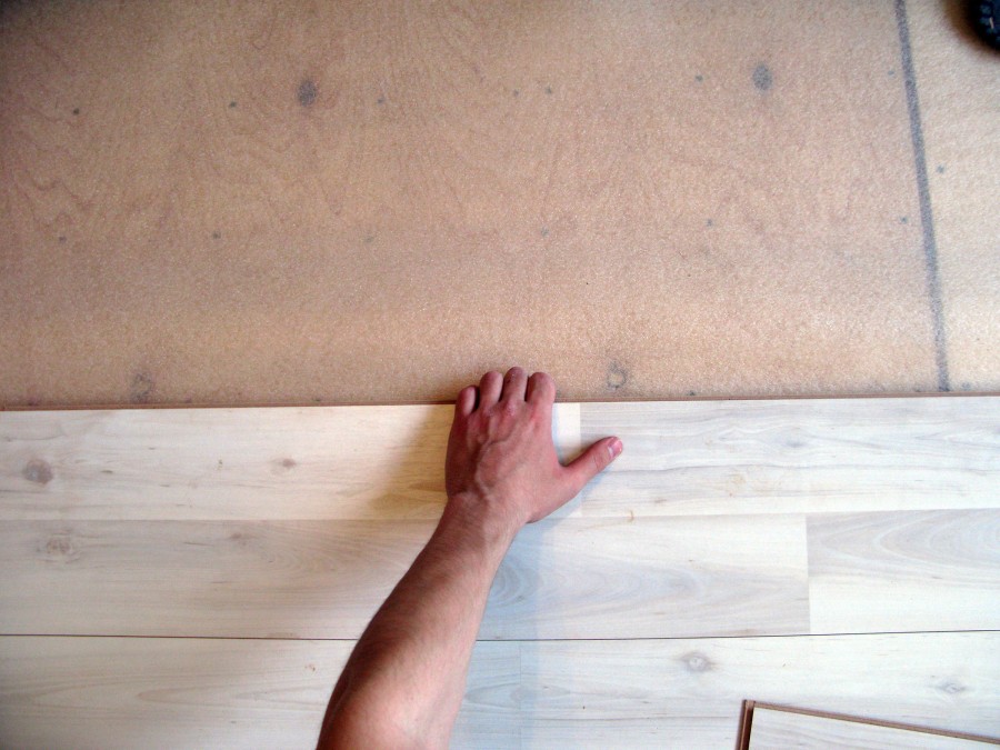 - укладывание массива, начиная от стены, с небольшим зазором в 7 мм;