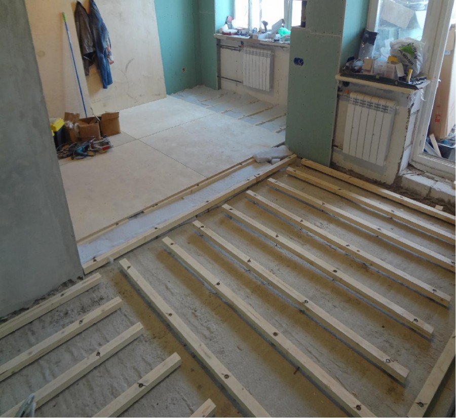 Укладка фанерных листов на лаги