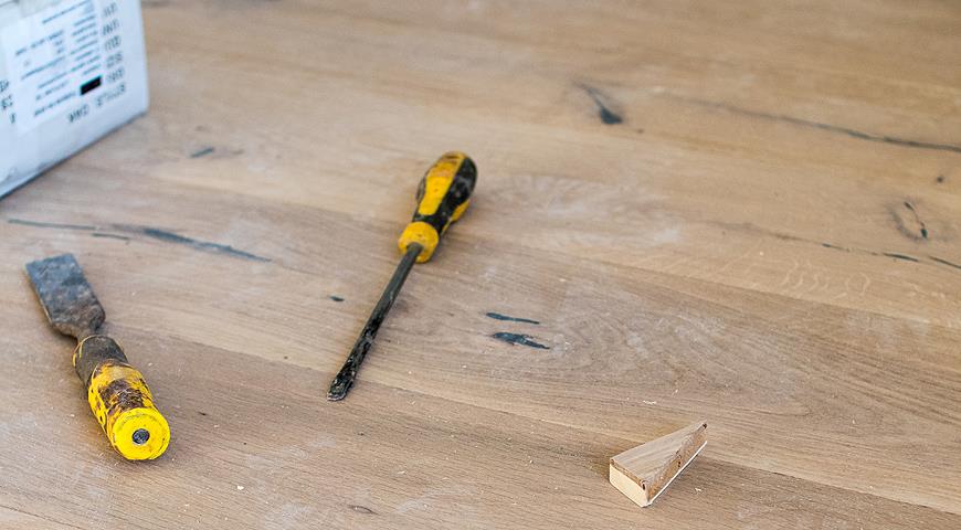 Ремонтопригодность – еще одно достоинство паркетной доски. В случае порчи, ее легко заменить, если укладка прошла «плавающим» методом. Реставрация отдельных планок наборного паркета – трудоемкая процедура, но при скрупулезном подходе, понятная и выполнимая.