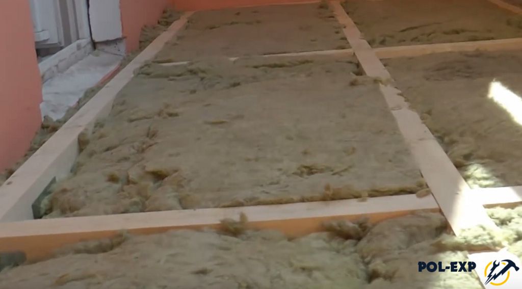 - Укладывают утеплительный материал, используя подходящий материал: пенопласт, минвату.