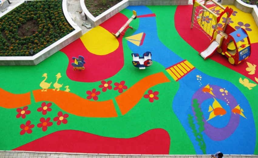 Резиновое покрытие для детских площадок: характерные особенности материала