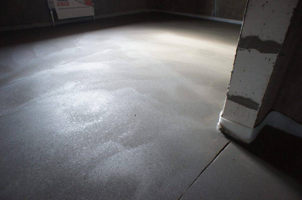 Сразу после разглаживания полусухой стяжки, следует закрыть в помещении все окна и обеспечить высокотемпературную влажную среду для активной химической реакции.
