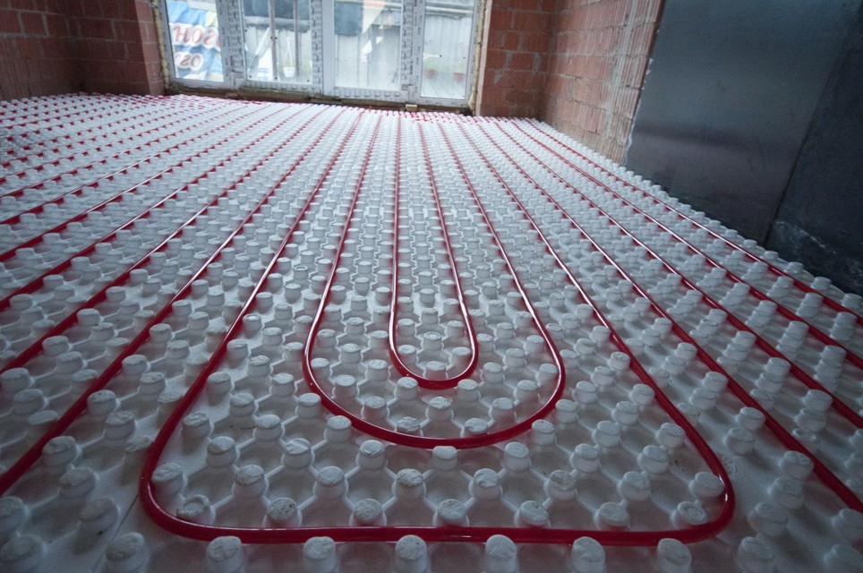 Трубопровод водяной системы теплого пола помещается в цементную стяжку