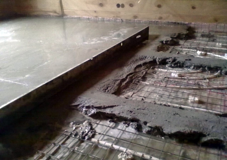 - Стяжка системы обогрева выполнена в несоответствии с необходимыми техническими требованиями. При бетонной заливке иногда уклоняются от установки демпферной ленты. Такой недочет часто становится причиной образования трещин в цементном покрытии, что приводит к тепловым потерям. Также причиной разрушения стяжки может стать включение системы раньше требуемого срока. После заливки пола раствором следует выждать не менее тридцати дней для полного застывания бетона.