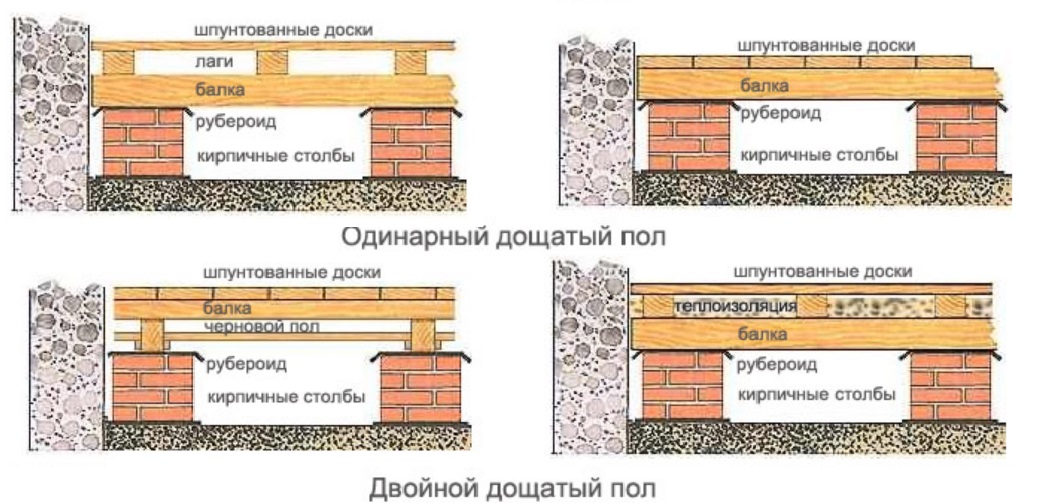 То есть должна получиться своеобразная обрешетка. Такой пол будет намного крепче. Между лагами теперь можно осуществить устройство (положить) теплоизоляционного материала. Его укладывают плотно, подгоняя к краям деревянных брусов и к стене.