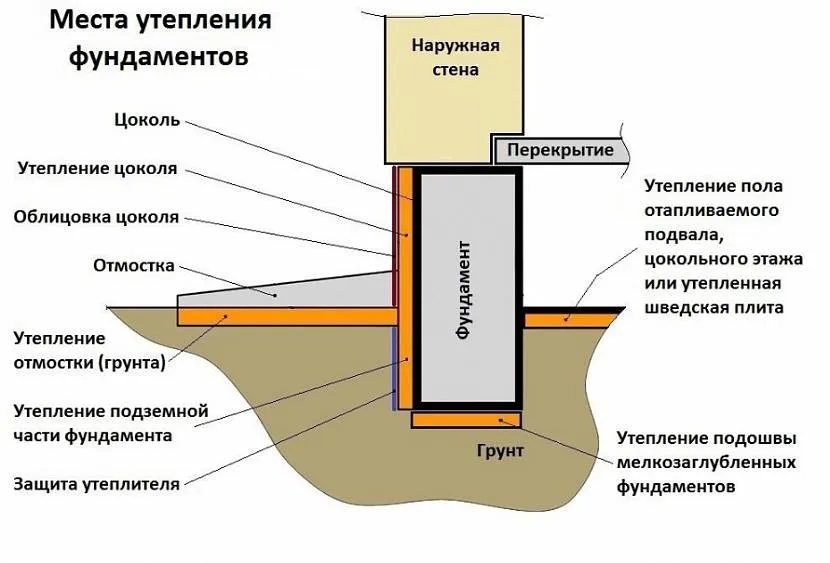 Казалось бы, стоит только защитить фундамент от влаги в грунте, и можно быть уверенным, что помещения выше цокольной части будут всегда теплыми, если грамотно провести отопление. Мнение это не всегда правильное, потому что в некоторых регионах температура зимой может оказаться очень низкой. Так что даже самый толстый фундамент не спасет от проникновения холода с его стороны.