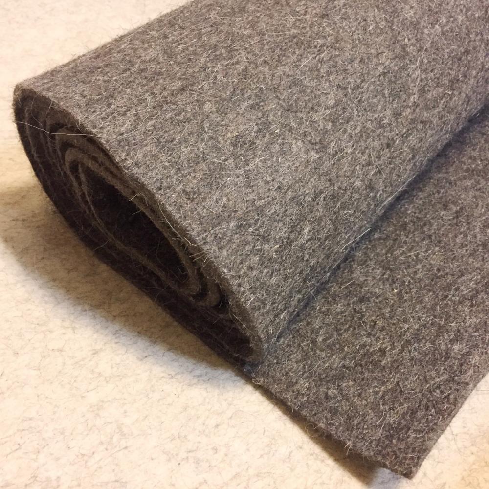 Натуральный утеплитель, который изготавливается из валяной шерсти. Обладает низкой теплопроводностью (от 0,036 Вт/мК), при этом хорошо пропускает воздух. Продаётся в рулонах или листах. Он износостоек и экологичен. Правильно изготовленный войлок (на 100% состоящий из шерсти без примесей) пожаробезопасен. Больше подходит для утепления деревянных дверей, но при этом хорошо впитывает влагу, что является минусом для теплоизоляции входной двери. Относится скорее к устаревшим утеплительным материалам.